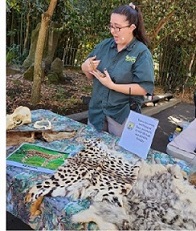 Events and at schools: Education staff members set up tables with bio facts and share information on the pet trade, illegal hunting, forest fragmentation and its conservation impacts, and some information about our animal residents.