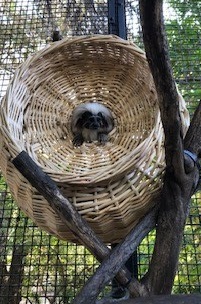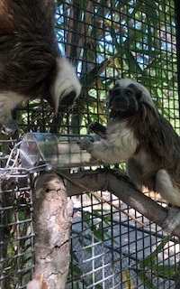 Cotton top tamarins are omnivorous and are given a variety of fruit choices in their diet including slices of watermelon