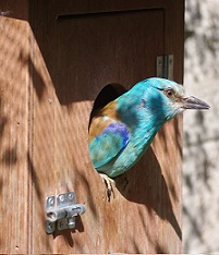 European Rollers migrate extensively for long distances from their breeding grounds in Europe and western Asia to their wintering grounds in Africa. Their vocalizations are loud and shrill when they are alerting their family that predators are close by (alarm call).