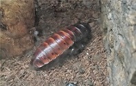 Madagascar Hissing Cockroaches also known as hissers are one of the largest species of cockroaches in the world reaching a length of three inches. They have a rust and black-colored segmented thorax and abdomen. Their exoskeleton is thick and hard and their heads, antennae, and legs are black in color. Unlike most other cockroaches, the Madagascar Hissing Cockroaches are wingless. Their feet have hooks on them that help them climb smooth surfaces. They are active by night (nocturnal).