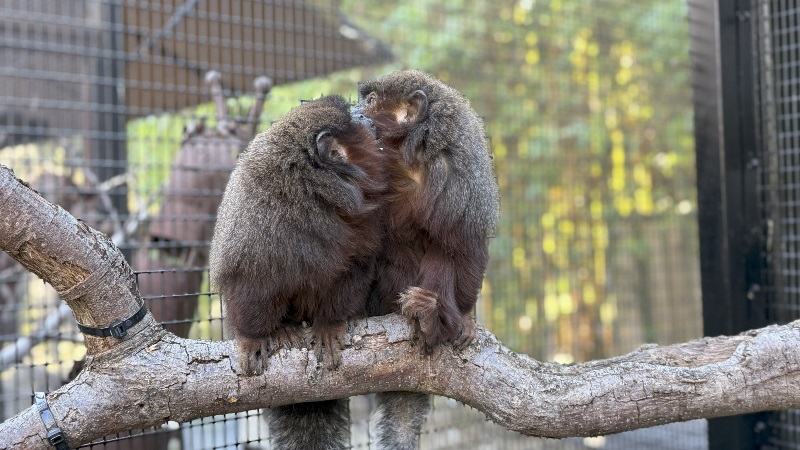 Coppery Titis form long term bonds and mating pairs live together with several generations of young. One infant is born every year between November and March. The young are weaned when they are about four months old. Males are the primary caregivers and predominantly take care of the infants. They commence their parental role a few hours after the infant is born, carrying them around and protecting them. The female’s only parental care role is nursing the infant.