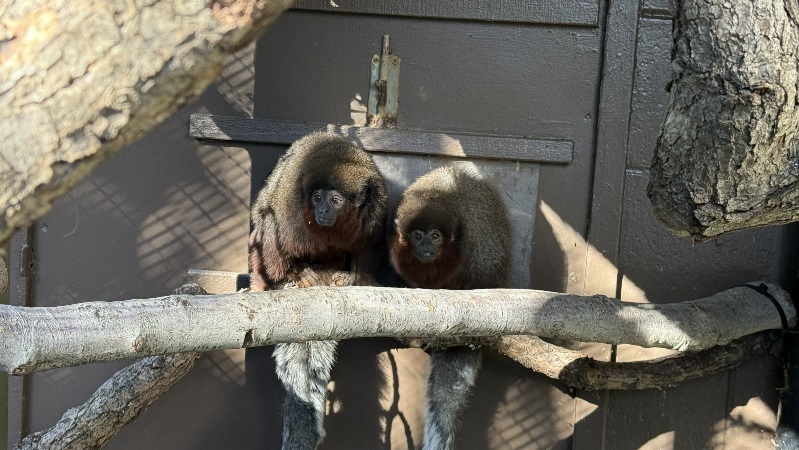 Coppery Titis have a thick coat of reddish-brown fur covering their bodies with the exception of their faces. Their coloring acts as camouflage- helping them hide from predators. Equipped with long tails, strong feet, and sharp claws, the Coppery Titi is well adapted to life in the trees making them an arboreal species. The tail helps with balance when the titi climbs trees and as a rudder when it jumps from tree to tree. Titis also use their tail as a flag to communicate social signals, often entwining it with tails of family members with whom they are socially bonded. Males and females are similar in size and are about a foot long with tails that are 14-25 inches long. They weigh around two pounds. Coppery Titis are diurnal, which means they are active during the day.