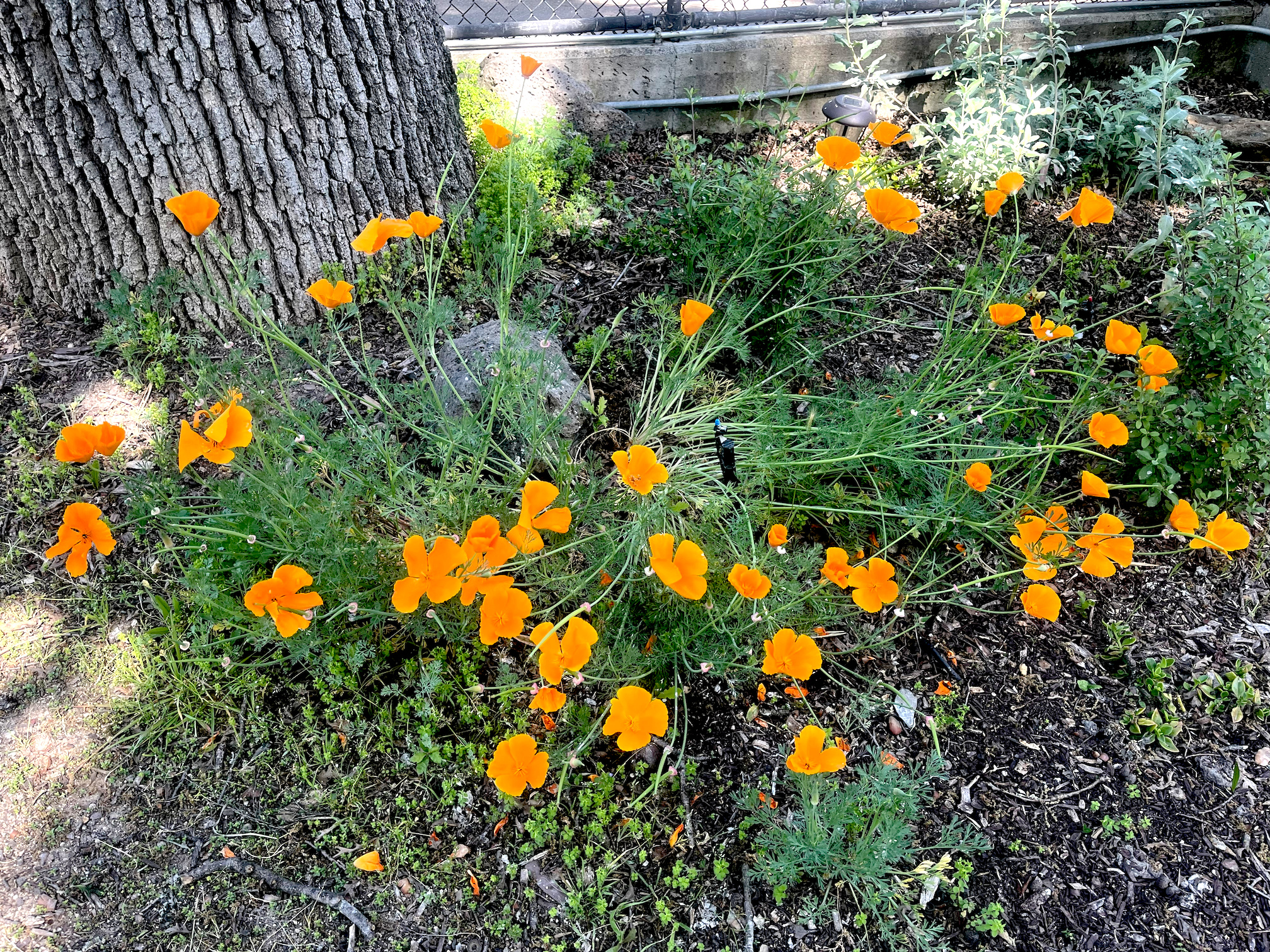 One of Micke Grove Zoo's (MGZ) goals is to conserve water through water-wise landscaping. The California Chaparral and Central Oak Woodland eco-region that the zoo is located in, is shaped by hot, dry summers and mild, wet winters. This region is characterized by mixed oak and pine woodlands [Valley Oak (Quercus lobata), Blue Oak (Quercus douglasi), Coast Live Oak (Quercus agrifolia), Interior Live Oak (Quercus wislizenii), and Gray Pine (Pinus sabiniana)] growing fairly close together, mixed in with plants, shrubs, annual wildflowers, and few grasses. Although much of the oak woodlands of Central Valley have been lost, Micke Grove Park has a robust population of oak and pine species that characterize this eco region. A water-wise landscape in central California necessarily needs to incorporate native plants, shrubs and trees that are adapted to the local environment, have relatively low water requirements and are drought tolerant, requiring very little water, or no water at all once they are established. Water efficient landscaping thus lowers consumption of groundwater and allows surplus water to be available for other domestic and community uses and the environment.